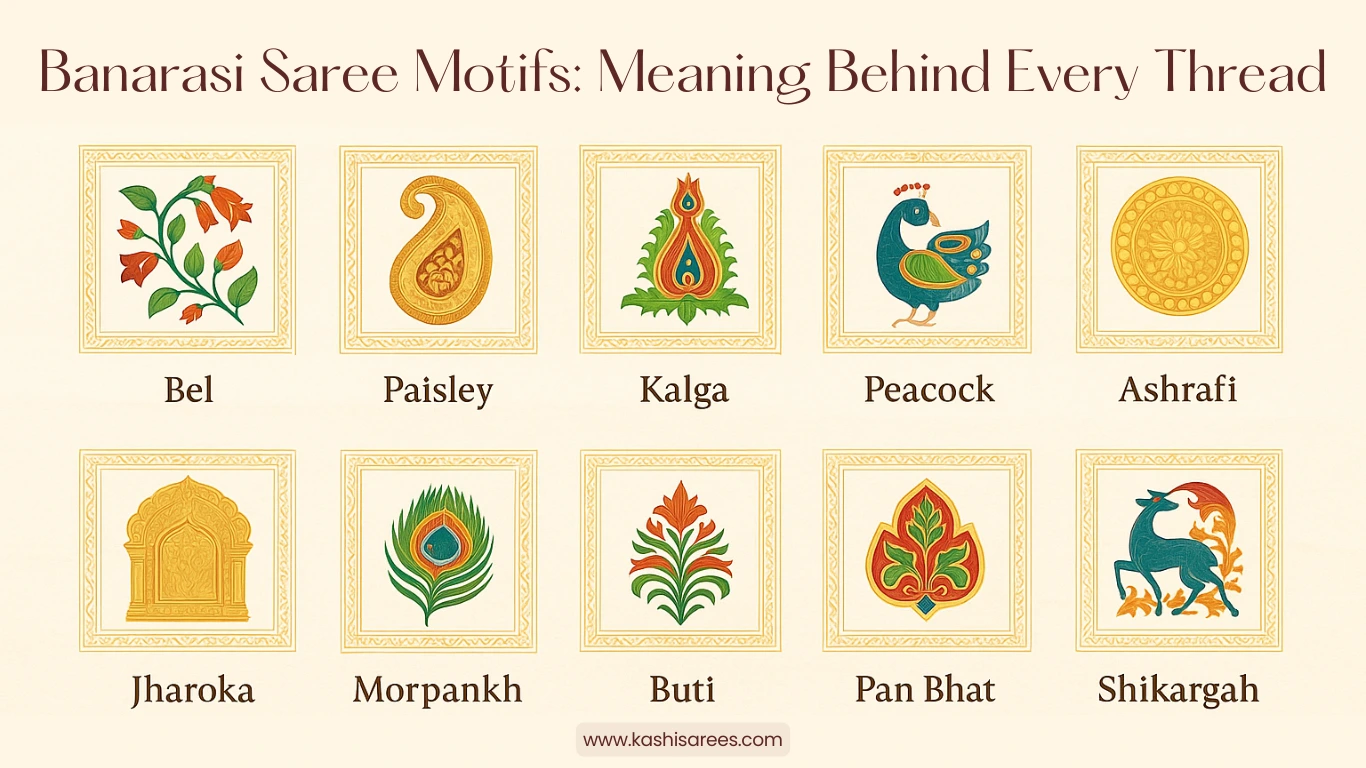 #KashiSarees #BanarasiMotifs #DecodingDesigns #HandloomHeritage #SareeStory #IndianArtInTextiles #CulturalWeaves #MyKashiMotif #BanarasiSymbolism #FromThreadToMeaning