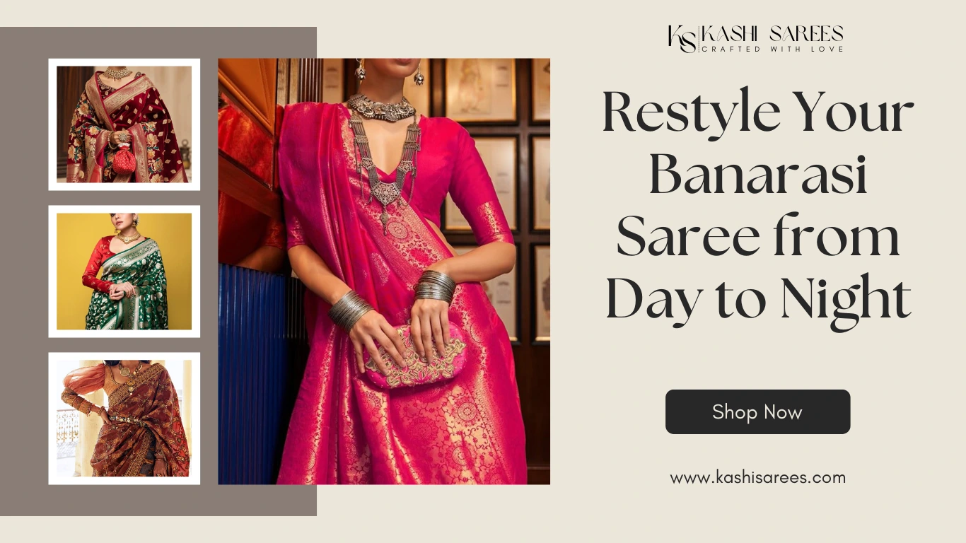 At Kashi Sarees, we believe that elegance shouldn’t be limited by the clock. Here’s a guide on how to take one Banarasi saree from a spiritual sunrise to a sparkling sunset—with just a few thoughtful styling switches.