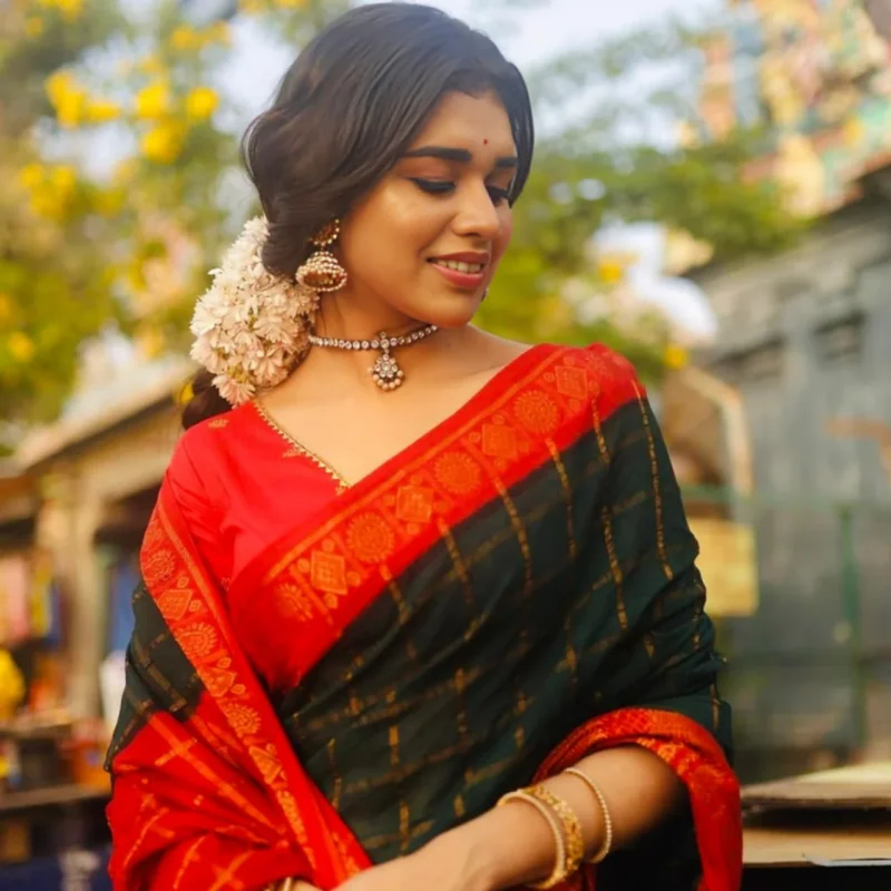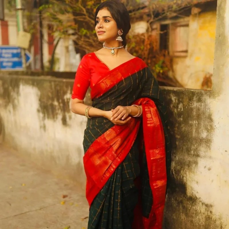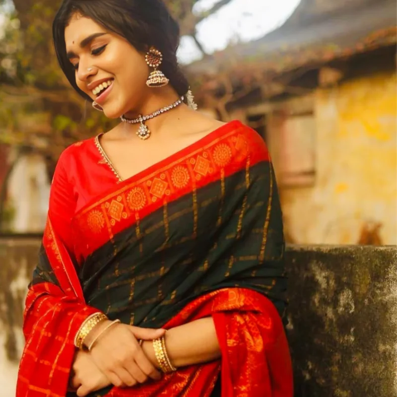 Black Red Soft Silk Banarasi