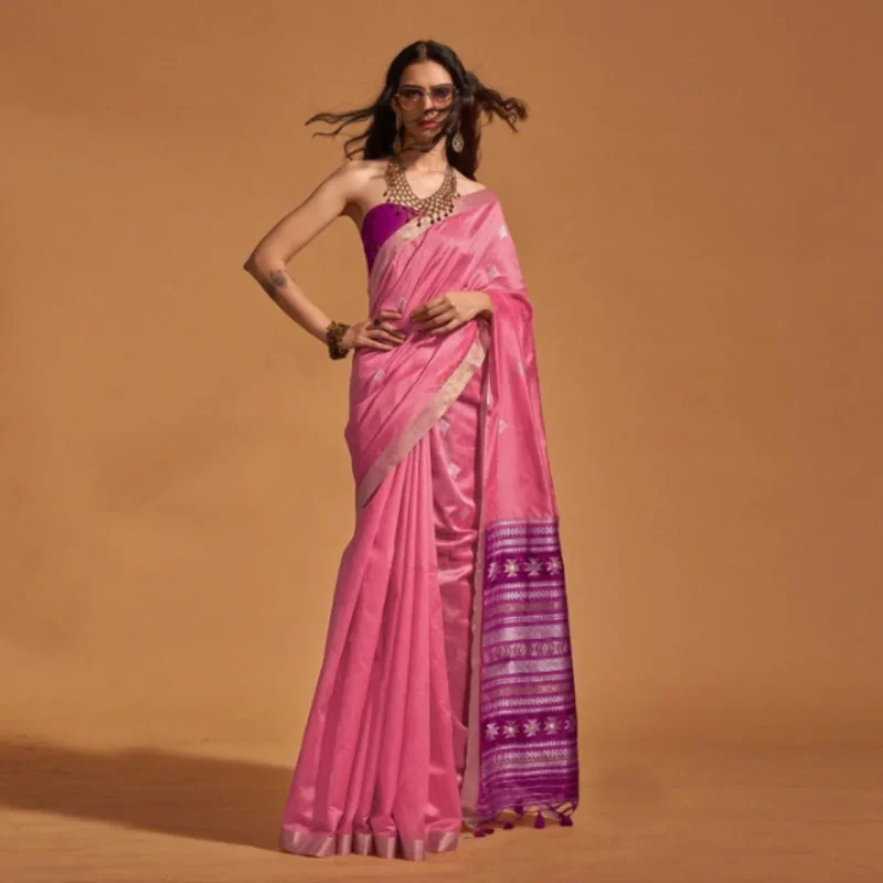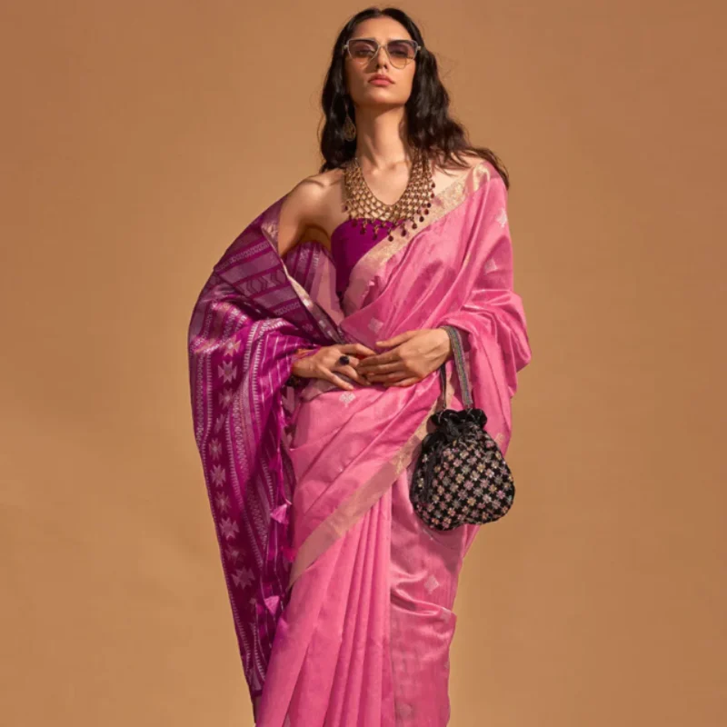 Turn every occasion into a royal affair with our Light Pink Kanoi Silk Banarasi Saree. Crafted in luxurious Kanoi silk, this saree features delicate zari motifs and an intricately woven contrasting pallu that adds depth and drama. The soft pink hue blends elegance with grace — perfect for weddings, festive celebrations, or a statement party look.