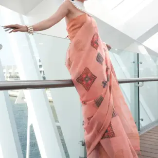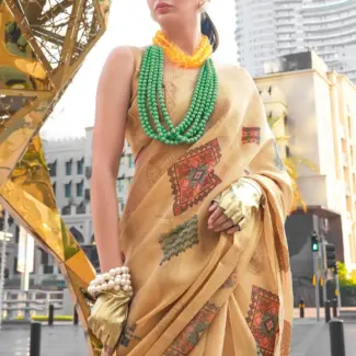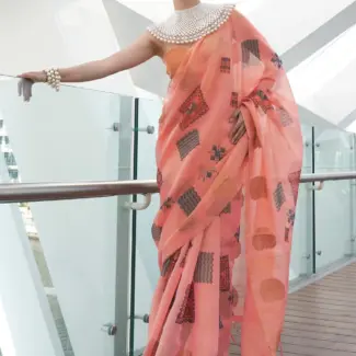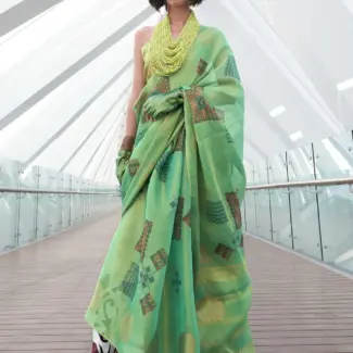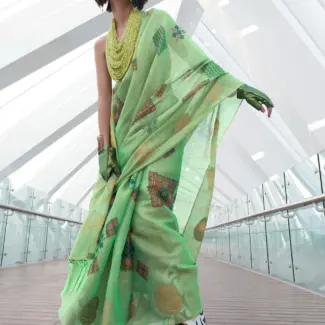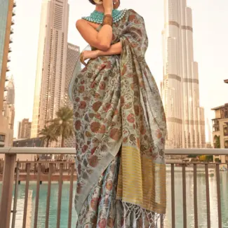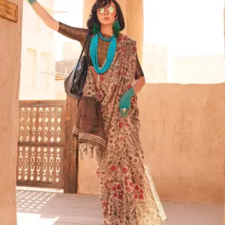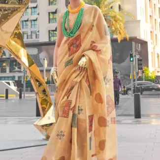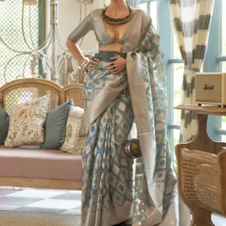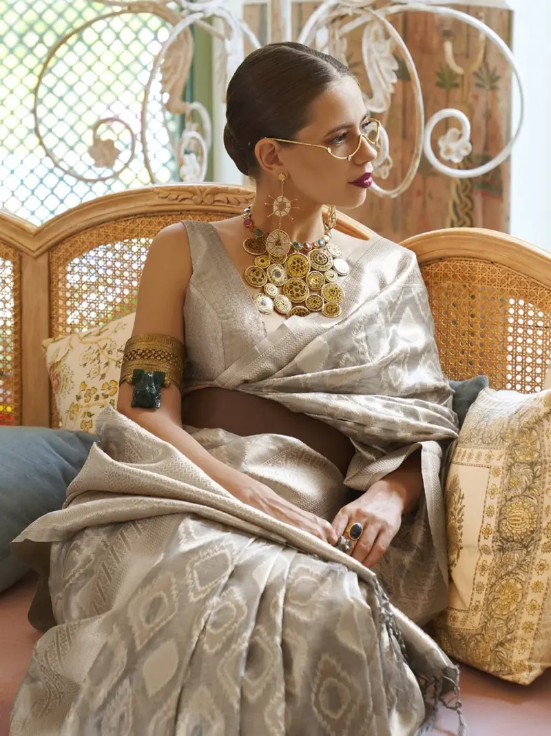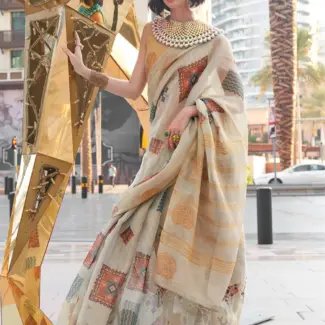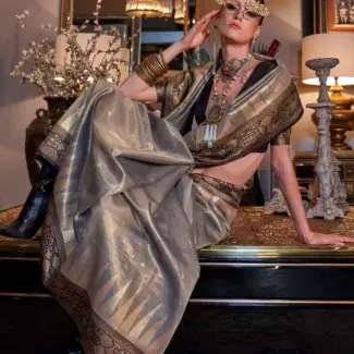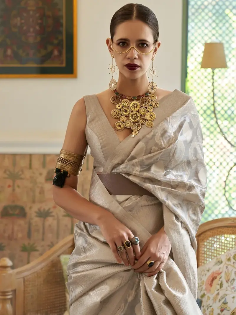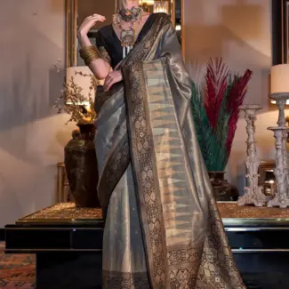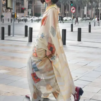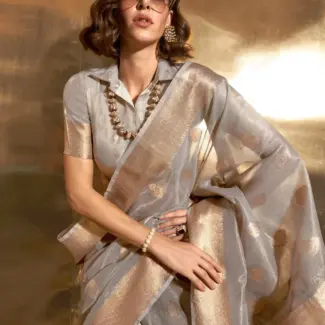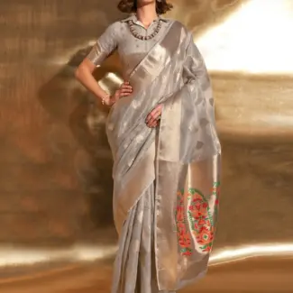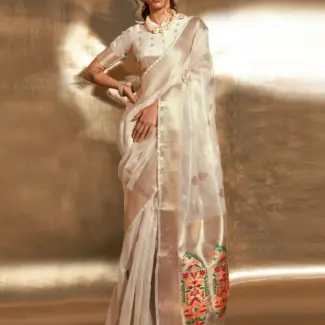 Off White Woven Design Tissue Saree