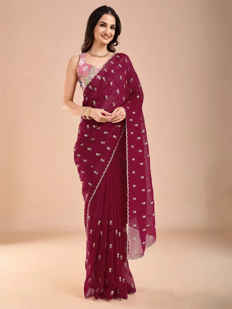 Red Berry Embellished Designer Saree