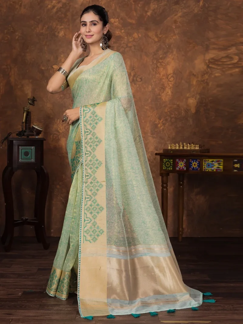 Green Woven Design Designer Saree